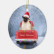 Ornamento De Cerâmica Cachorro na neve sentado no Caminhão de Natal