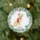 Decorre sua árvore ou dê um presente especial nesta temporada de festas com este elegante ouro de Feliz Natal num enfeites de natal de coroa, e compaixão. Este enfeites de natal recuperador de ouros apresenta um cão aquarela em uma coroa verde e vermelha, com sombra e bagas. Personalize com o nome na frente, ano atrás. Este enfeites de natal de recuperador de ouros será um favorito entre amantes de recuperadores de ouros, amantes de cachorros e amantes de os animais. Visite nossa coleção para combinar cartões de natal de recuperação de ouros, decoração doméstica e presentes. COPYRIGHT © 2020 Judy Burrows, Black Dog Art - Todos Os Direitos Reservados. Ornamento cerâmico personalizado de Ouro para animais de estimação personalizado