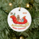 Um adorável canalha de cozinha colorida do Cocker Spaniel Cachorro fica entre pacotes de presentes brilhantemente envoltos em um ornamentado vermelho e uma trenó de Natal dourado. No topo está um campo de texto que pode ser personalizado para o seu nome ou o ano atual. Na parte inferior está outro campo de texto personalizado que diz "Feliz Natal". Ambos os lados do ornamento têm a mesma imagem.