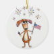 Ornamento De Cerâmica Cachorro Patriótico Caprichoso e Fofo com Bandeira