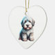 Celebre o charme caloroso de um amigo leal com este adorável Ornament de Cachorro Personalizado de Old English Sheepdog da Paws Charming. Este design encantador apresenta um adorável filhote de sheepdog ilustrado e fofinho sentado docemente, seus cachos macios capturando toda a alegria do amor de filhote.