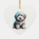 Celebre o charme caloroso de um amigo leal com este adorável Ornamentro de Cachorro Personalizado de Old English Sheepdog Filhote da Paws Charming. Este design encantador apresenta um adorável e fofinho cachorrinho ilustrado de sheepdog sentado docilmente, seus cachos macios capturando toda a alegria do amor de filhote.