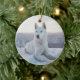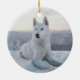 Ornamento De Cerâmica Cachorro Rouco branco entalando na neve