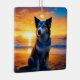 Um cão sentado numa praia na sunset ai art. Cachorro temeu Enfeites de natal personalizado.