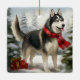 Ornamento De Cerâmica Cachorro Siberiano Husky no Natal da Neve