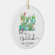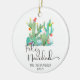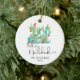 Ornamento De Cerâmica Cacto Feliz Natal Água-Marinha Aquarela Personaliz