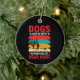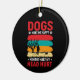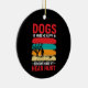 O ornamento cerâmico de Cães e Humanos apresenta uma silhueta negra de um homem e cão com texto que diz Cães fazem-me Humanos Felizes Faz-me Mal! Este é um presente excelente para o amante do cachorro que gosta mais de cachorros do que de pessoas!