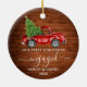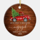 Manuscrito moderno de caligrafia O nosso primeiro ornamento de Natal inclui o Watercolor Vintage Red Truck com Árvore de Natal - Impressão de Madeira Rústica