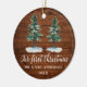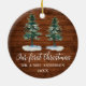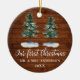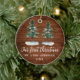 Manuscrito Elegante moderno de caligrafia, Árvores de Pinheiros de Aquarela, Nosso Primeiro Natal Sr. e Sra. Ornament de Casal de Casamento - Madeira de País Rústico