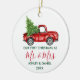 Rótulo de Caligrafia Moderna Nosso Primeiro Natal como Sr. e Sra. - Ornamento de Caminhão Vermelho Aquarela Vintage - Texto Verde Floresta com Rótulo Vermelho