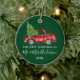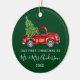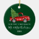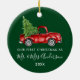 Moderno Script de Caligrafia Tendência Nosso Primeiro Natal como Sr. e Sra. Ornamento inclui Caminhão Vermelho Vintage com Árvore de Natal - Verde Floresta