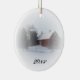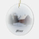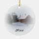Personalize o encantador sermão de Natal do País com o ano atual. Crie um stuffer de estocagem personalizado, presente no xmas ou presente no festival. Este enfeite personalizado enfeite uma fotografia de inverno acinzentada de um celeiro vermelho e silo coberto de neve branca.