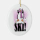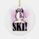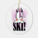 Ornamento De Cerâmica Camiseta e presentes do esqui do pinguim