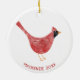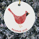 Pequena e festiva ave cardeal em vermelho e branco, perfeita para Natal e Feriados de inverno. Altere o nome e o ano para personalizar. Arte original de Nic Squirrell.