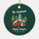 Um design de Natal personalizável com ilustrações confortáveis e bonitas de camper e pinheiro. Este item pode ser personalizado com um nome, mensagem ou cartões de natal. As cores incluem as tradicionais cores de Natal de verde, vermelho e branco, bem como o verde-escuro e o verde-menta. Faz um presente de Natal excelente para uma família nas férias.