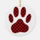 Pata de cão com padrão cardíaco. Desenho original em vermelho e preto.
