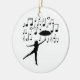 Dançarino que está sendo levantado afastado por notas do guarda-chuva e da música