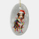 Ornamento De Cerâmica Cão Collie de Natal Envolto em Luzes de Natal