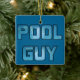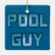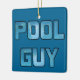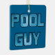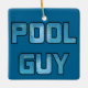 Ornamento do homem do serviço da piscina com tipografia da água azul.