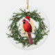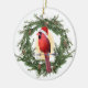 Um Cardeal vestindo um Papai noel que dentro a uma coroa de férias