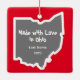 O esboço do estado de Ohio, um fundo de folhas de buchye, um cardeal (nosso pássaro estadual), e os próprios loucos buckeye adoram esse Enfeites de natal espiritual de Ohio. Deixe a mensagem "Made with Love in Ohio" nas costas ou inclua uma nota rápida da sua. Inclua o seu sobrenome e o ano, e você tem uma manutenção que seu destinatário vai adorar por anos! Esta variação é criada principalmente para aqueles com cor verde-vermelha. Há outra versão com fundo frontal em vermelho, se preferir. Espero que dê uma olhada na minha loja! Foto e design por Amanda Renee, CtrlZ Digital Designs Todos os elementos usados com permissão. Buckeyes feitos por Amanda.