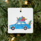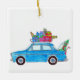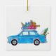 Ornamento De Cerâmica Carro Azul com Presente de Natal Aquarela