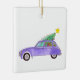 Ornamento De Cerâmica Carro roxo com presentes de Natal