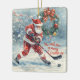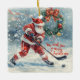 Ornamento De Cerâmica Cartão de Natal de Hockey do Papai Noel