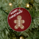 Engraçado pão-de-gengibre, um desenho personalizado de natal, ornamento cerâmico. Design para crianças e adultos. Como opção, adicione sua própria imagem fotográfica no verso. Saudação personalizada ou nome da família.