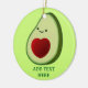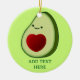 Estilo de desenho animado com coração vermelho. ornamentos cerâmicos personalizados. Editar texto para personalizar. Ideia de presente para amantes do abacate.