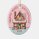 Ornamento De Cerâmica Casa de Pão de Mel Rosa Primeiro Natal do Bebê