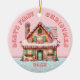 Adicione o toque perfeito à sua decoração de Natal com esse adorável enfeite de Natal da casa de pão de mel pastel rosa para o primeiro Natal do bebê. Personalize com sua própria foto e texto.