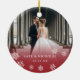 O ornamento de fotos elegante para recém-casados mostra uma foto favorita de casamento em cada lado. "Casado & brilhante" aparece em um roteiro de caligrafia branca adornado com flocos de neve em um gradiente vermelho de morango. Personalize com seus nomes e data de casamento ou ano no verso. Um belo guardião para o seu primeiro Natal casado.