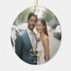 Nosso primeiro Natal como Sr. & Sra! Casado e Feliz! Elegante, Simpel, Ornament Cerâmico Fotográfico Comemora o amor e a alegria do seu primeiro Natal junto com este elegante ornamento fotocerâmico. Apresentando a frase Casado & Feliz, esta manutenção do eterno pode ser personalizada com sua foto favorita, nomes e data de casamento. A design limpa e moderna faz dela uma bela adição a qualquer decoração de férias e um presente significativo para recém-casados, casais ou aniversários. Personalize a fonte, o tamanho e a cor para criar um ornamento exclusivo que será precioso nos próximos anos.