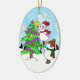 Enfeites de natal com bonitinho bonitinho de neve e moça de neve decorando a árvore de Natal. A parte de trás do ornamento é azul com flocos de neve bonito brancos e você pode adicionar sua própria mensagem pessoal na área de personalização.