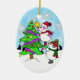 Ornamento De Cerâmica Casal Bonito de Snowman colocando Star na árvore