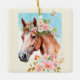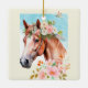 Belo cavalo aquarela e flores pintam ornamento cerâmico de dupla face. Uma maravilhosa adição à sua coleção de ornamentos, e uma adorável ideia de presente para alguém que ama cavalos.