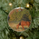 Ornamento De Cerâmica Cavalo Marrom com Pinheiros