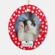 Ornamento de Fotografias de gato personalizado e bonito, com um padrão de espinha e osso de peixe em vermelho e branco. Basta adicionar o nome e a foto do seu animal de estimação e você está pronto para ir.
