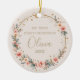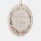 Marque seu primeiro feriado com essa design de Natal Celestial Baby First. Uma delicada camada de aquarela de estrelas de ouro champanhe, luas em crescente e constelações sutis é acentuada por florais embaçados e verde-sábio mudado, cercando seu texto personalizado. Impresso em porcelana lisa, com um fundo caloroso de pincel, este sonho continua a adicionar um toque de magia à decoração de feriados e faz um presente perfeito para novos pais ou avós.