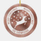 Design de silhueta de veados brancos de Destei junto com algumas estrelas sobre um fundo de textura de folha cor-de-rosa azul-rosa (NÃO FOIL REAL). Em volta do cervo, há um círculo branco que diz: "Feliz Natal" duas vezes e na base há uma área de texto personalizável para um nome de família ou outro texto personalizado. NOTA: a folha não é real. É uma imagem criada digitalmente que será impressa no produto.