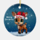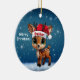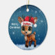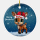 Celebre a temporada de festas com este enfeite redondo de cerâmica vermelha festiva, apresentando um gráfico de desenho animado de um adorável animal da floresta, um lindo bebê rena usando um chapéu de Papai Noel, e "Feliz Natal" escrito em branco. Rena perfeita com chifres para decorar sua árvore ou como um presente atencioso, essa decoração caprichosa de corça faz um enfeite querido por anos. Personalize alterando o texto, a fonte, a cor da fonte ou remova o texto. Você pode até transferir esse design para outros produtos. Aproveite esse design do seu jeito! Confira a Coleção ForestBabies Xmas Deer para decorações correspondentes. 🎄🦌