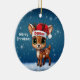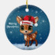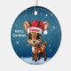 Celebre a temporada de festas com este enfeite redondo de cerâmica vermelha festivo, apresentando um gráfico de desenho animado de um adorável animal da floresta, um lindo bebê rena usando um chapéu de Papai Noel, e "Feliz Natal" escrito em branco. Rena perfeita com chifres para decorar sua árvore ou como um presente atencioso, essa decoração caprichosa de corça faz um enfeite querido por anos. Personalize alterando o texto, a fonte, a cor da fonte ou remova o texto. Você pode até transferir esse design para outros produtos. Aproveite esse design do seu jeito! Confira a Coleção ForestBabies Xmas Deer para decorações correspondentes. 🎄🦌