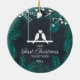 Chalkboard Ave Nosso Primeiro Natal Junto Com O Ornamento Cerâmico. Personalize com suas informações personalizadas tanto na frente quanto na parte traseira.