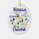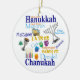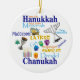 O ornamento Chanukah apresenta símbolos e palavras para o feriado. Leituras anteriores: Acenda as luzes.