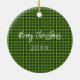 Silhueta de Black Lab com chapéu de Papai Noel, azevinho em fundo de xadrez gingham verde lima, preto. NOME personalizado em branco. FELIZ NATAL personalizado, ANO em branco no verso. Fácil personalização de texto, cor do texto, fonte. Decoração Festiva de Natal para qualquer Pai/Mãe de Pet, Presente de Natal para Pets, Amante de Animais, Favour de evento de Natal. Moderno, Esportivo, Divertido. Um Presente Atemporal. Misture e combine toda a Coleção Black Lab / Natal / Feriados da TMCdesigns.