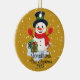 Um ornamento branco de árvore de Natal com um adorável boneco de neve rodeado por delicados flocos de neve. Personalize-o com o nome do seu filho e o ano para um toque personalizado que captura a alegria da estação. Use o botão "Personalizar" para personalizar de acordo com seu gosto.
