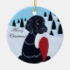 Arte original e engraçada de labrador retriever pintada por Naomi Ochiai de Japão. Um Labrador preto adorável está jogando com chapéu do papai noel!! O design delicioso para o Natal para Labrador preto ventila! Você pode personalizar o texto nos ambos lado. Introduza seu nome de família para personalizar o ornamento. :)