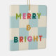 Created to coordinate with the "Checkerboard Merry & Bright" holiday card collection, this whimsical Christmas ornament features the phrase "Merry & Bright" in bold, colorful lettering, placed over a modern, blue checkerboard pattern. The back of the ornament has space for a customer photo.