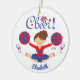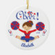 Ornamento personalizado do elogio cheerleader triguenho bonito azul & vermelho. Fácil personalizar com seus nome & data. Visite nossa loja para ver este ornamento em uma grande variedade de cores da escola & de cores do cabelo